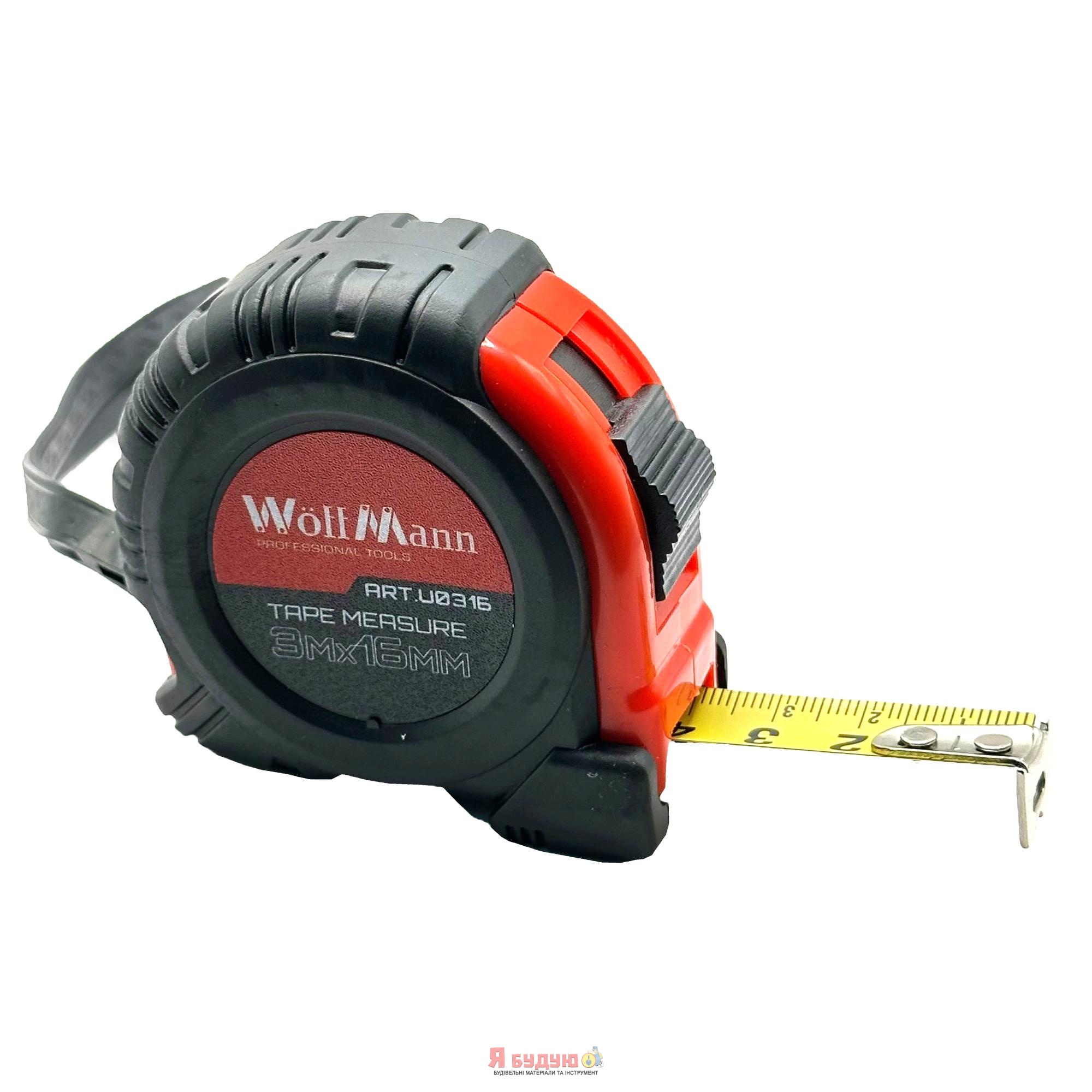 Професійна вимірювальна рулетка 3м × 16мм "WoffMann" призначена для вимірювання довжини під час проведення будівельних або ремонтних робіт, надає високу точність вимірів і зручність у використанні.