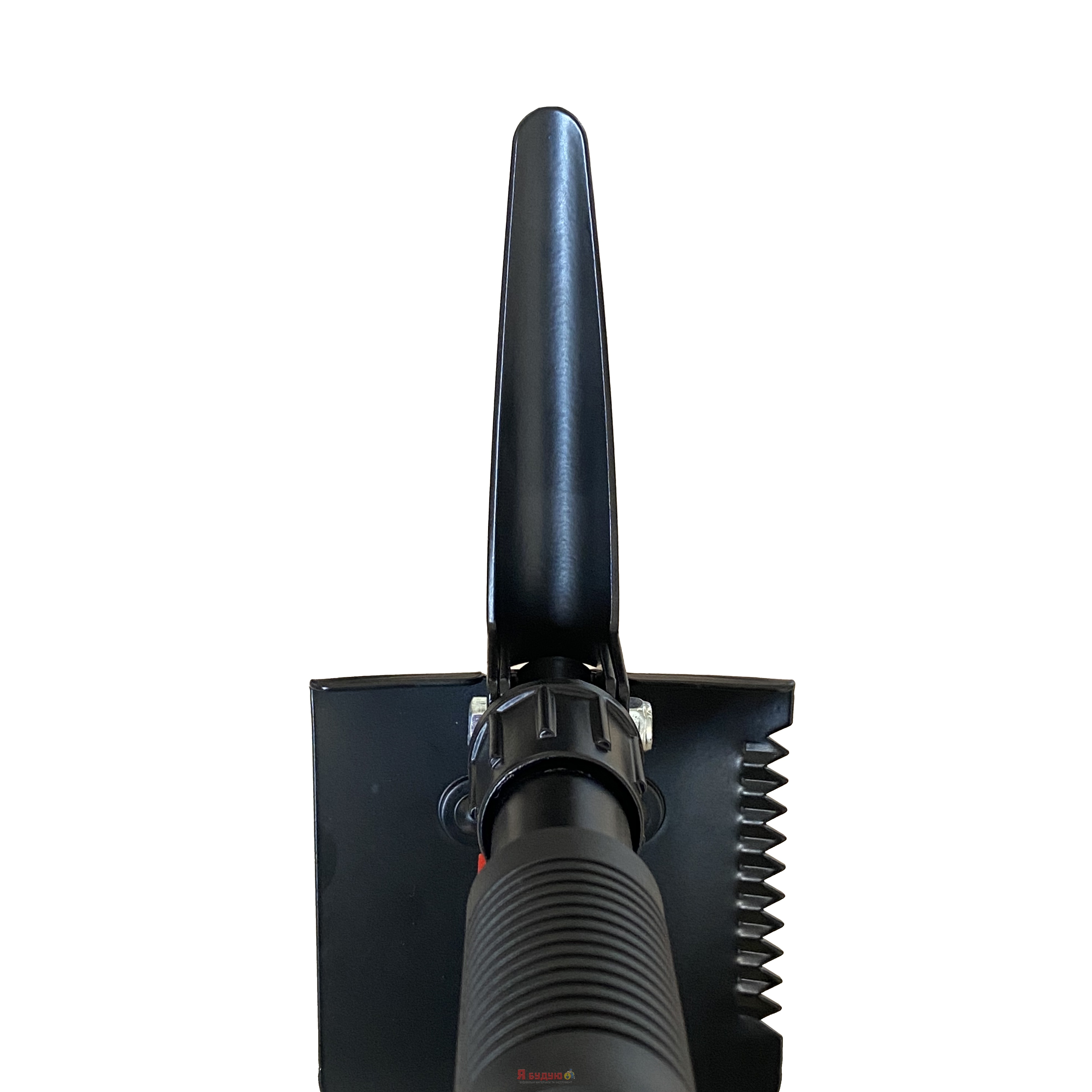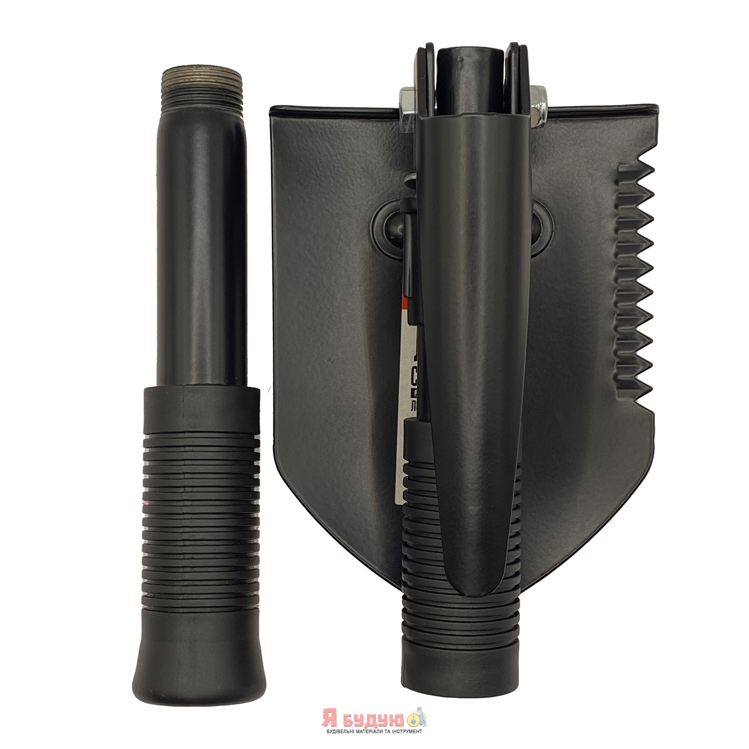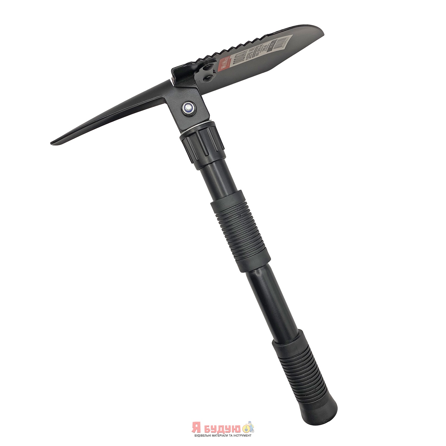 Лезо лопати забезпечене киркою, відкривачкою для пляшок, пильними зубцями.