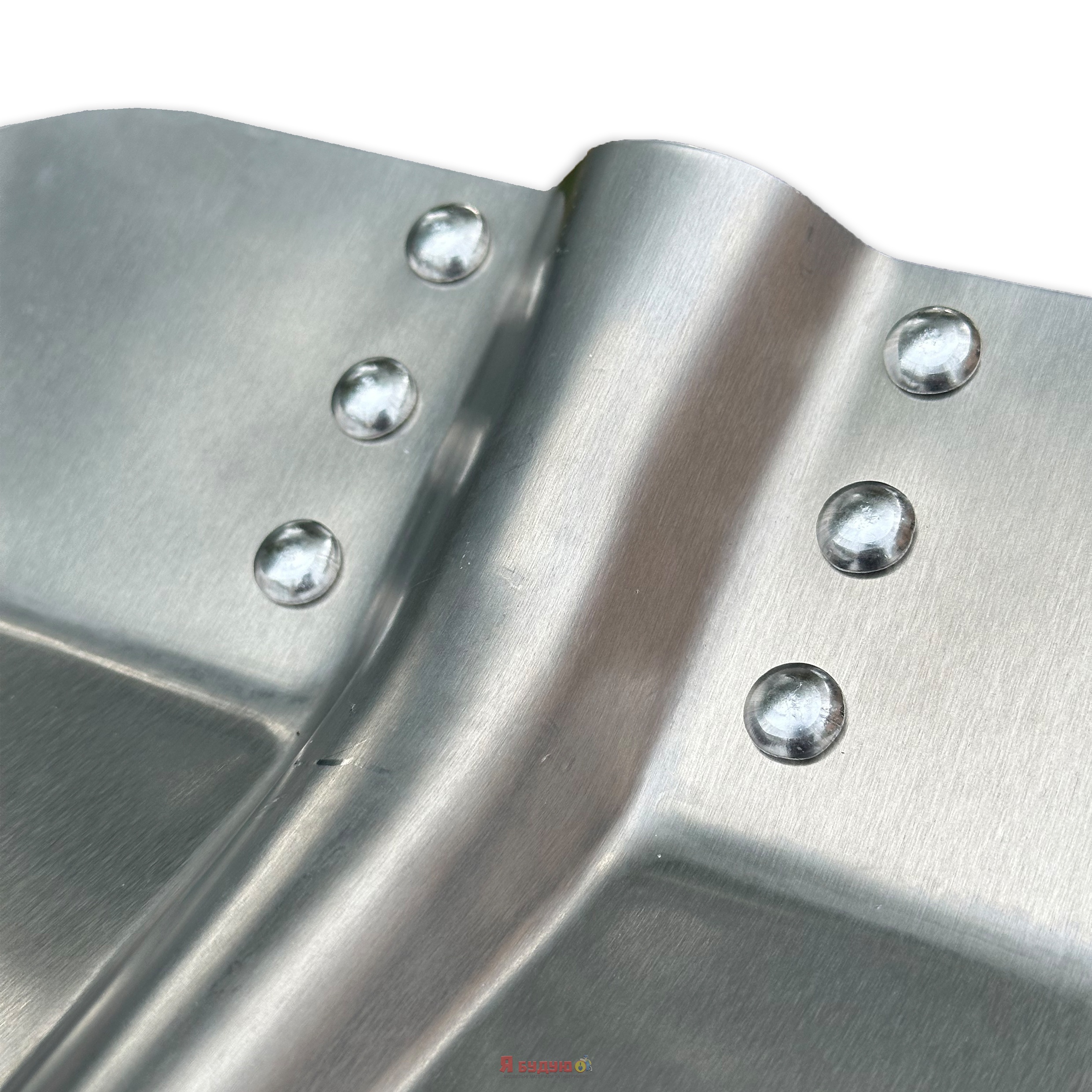 Полотно лопати має широку прямокутну форму, бічні сторони лопати загнуті та підняті, що дозволяє ефективно працювати лопатою з піском, щебенем, цементом, землею, снігом тощо.