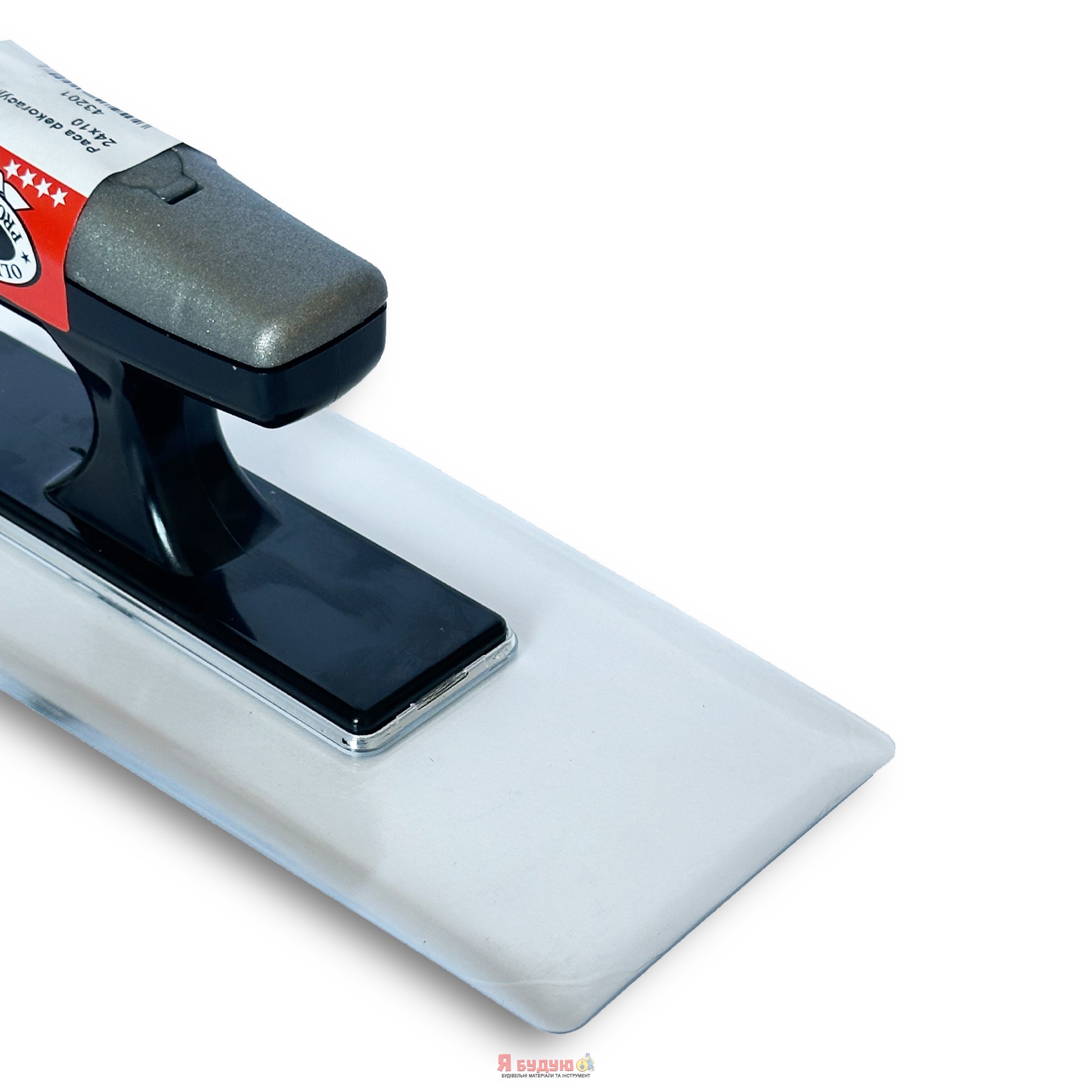 Терка для оздоблень прозора (трапеція) з заокругленими кутами 240х110мм пластикова ручка OLEJNIK