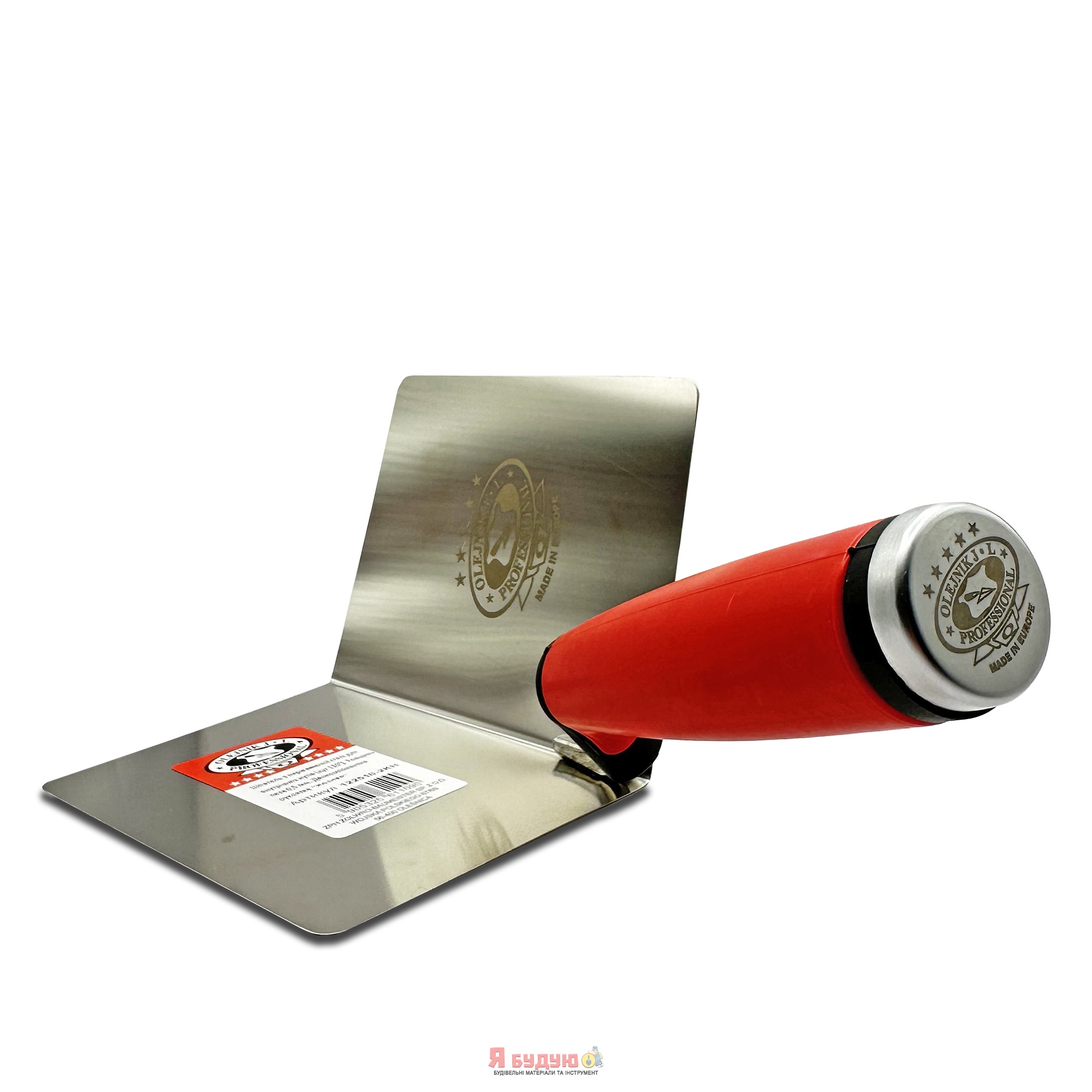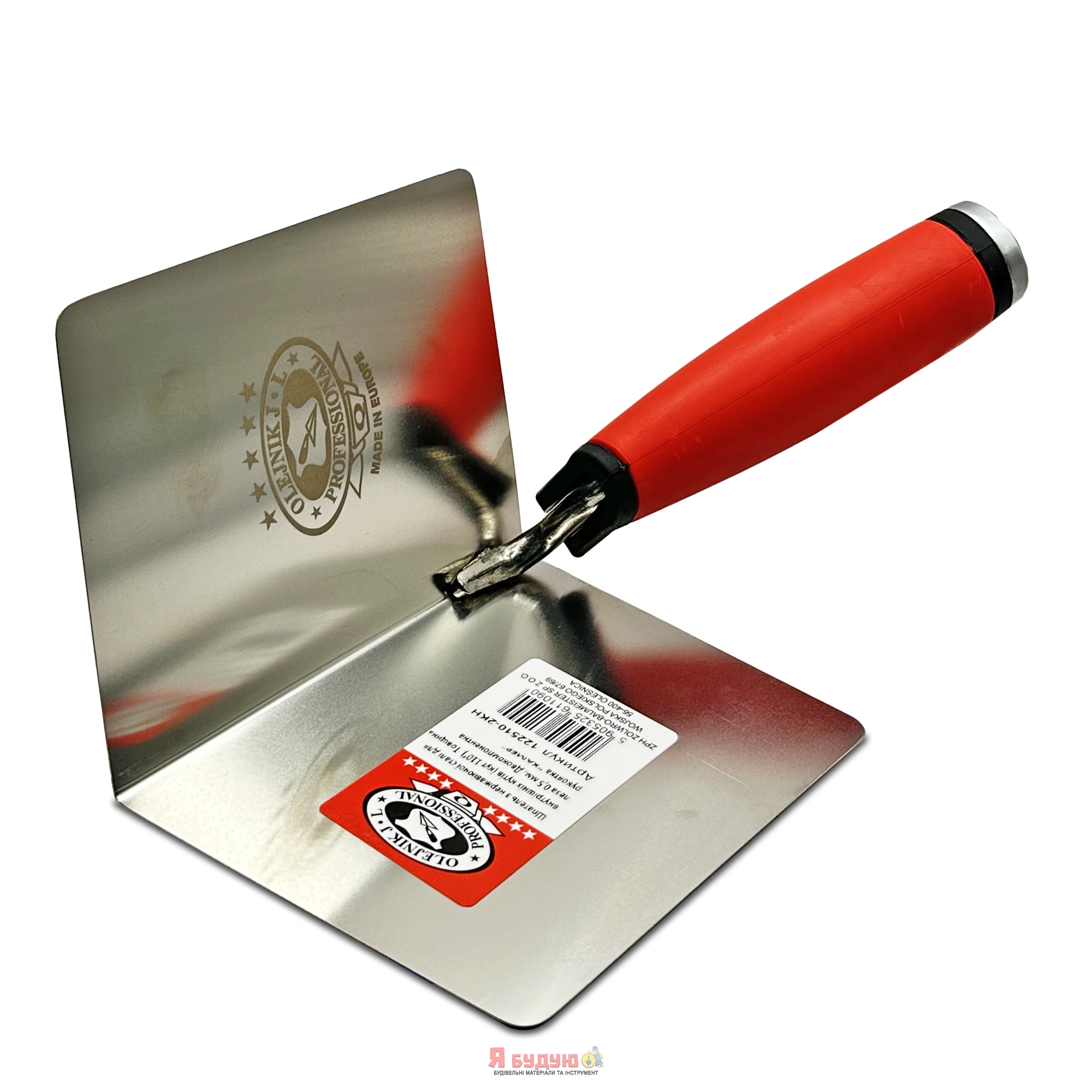 Кельма нержав. сталь 110х120х0,5мм (кут 110°) для внутр. кутів ручка з молотком Двохкомпон. OLEJNIK