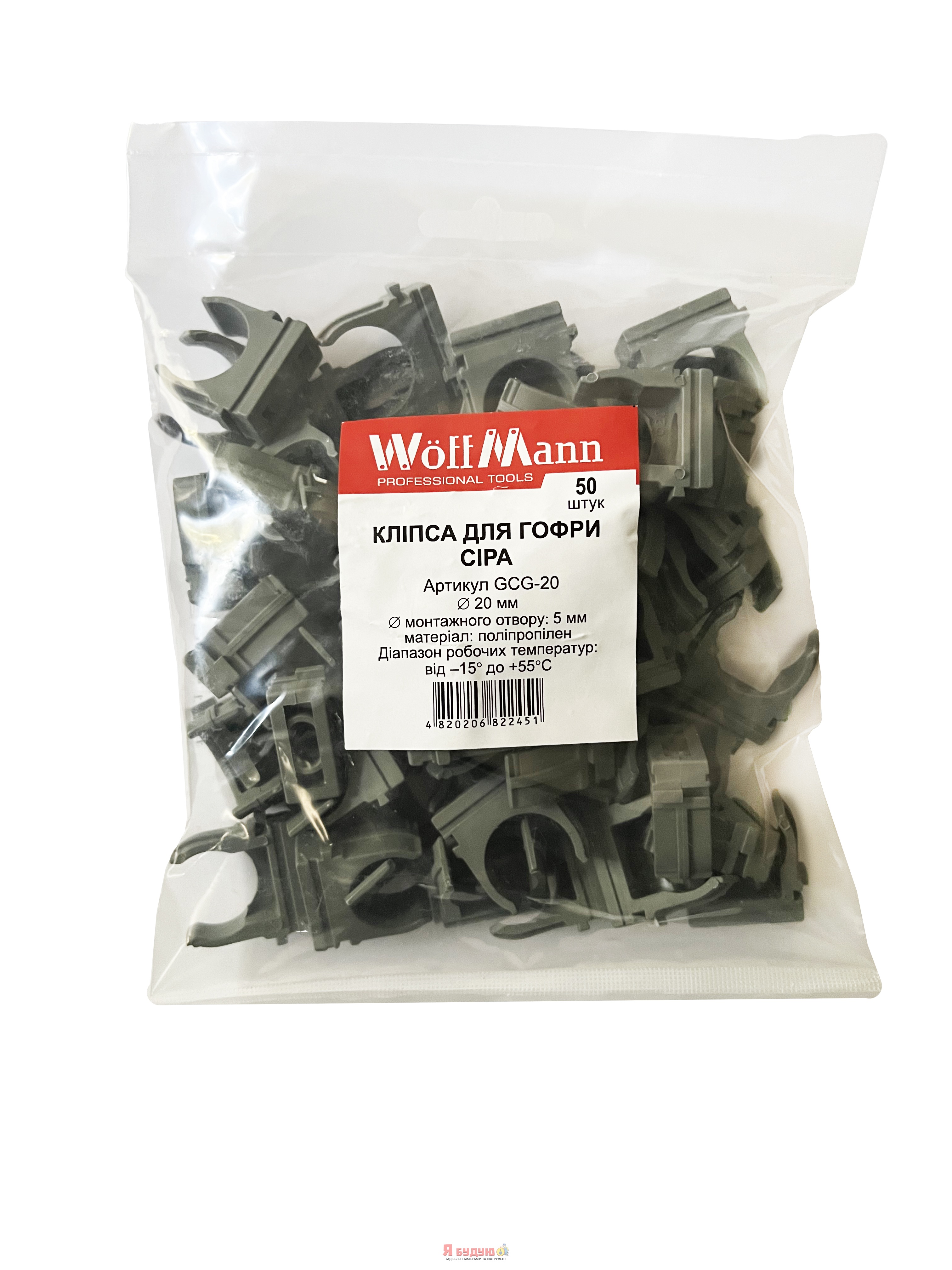 Кліпса для гофри сіра 16мм б/с (пач. 100 шт.)"WoffMann"