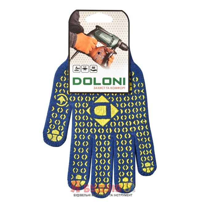 Рукавиці трикотажні з ПВХ малюнком Універсал сині арт.646
