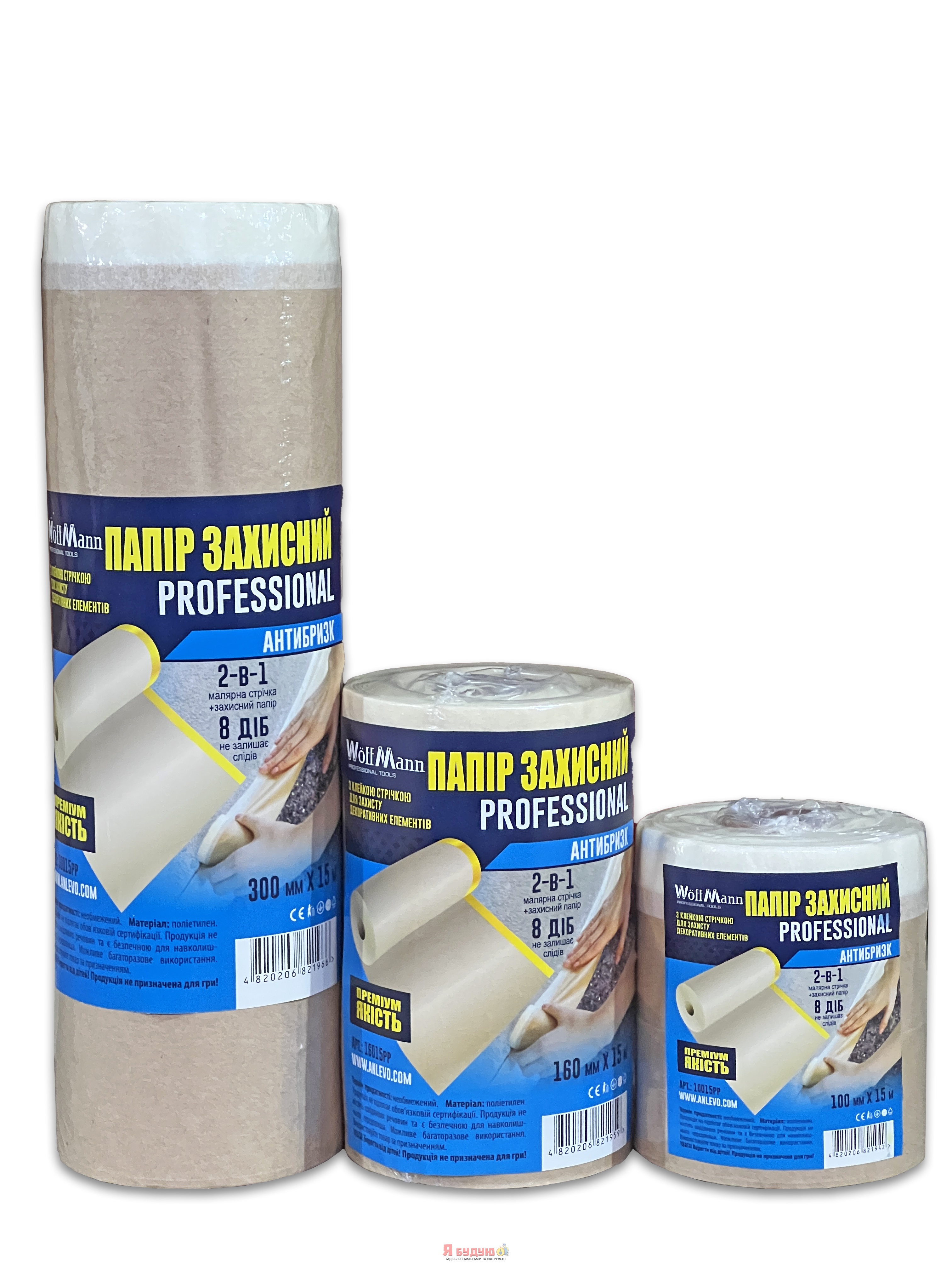 Папір захисний з клейкою стрічкою 160мм*15м ТМ "WoffMann"